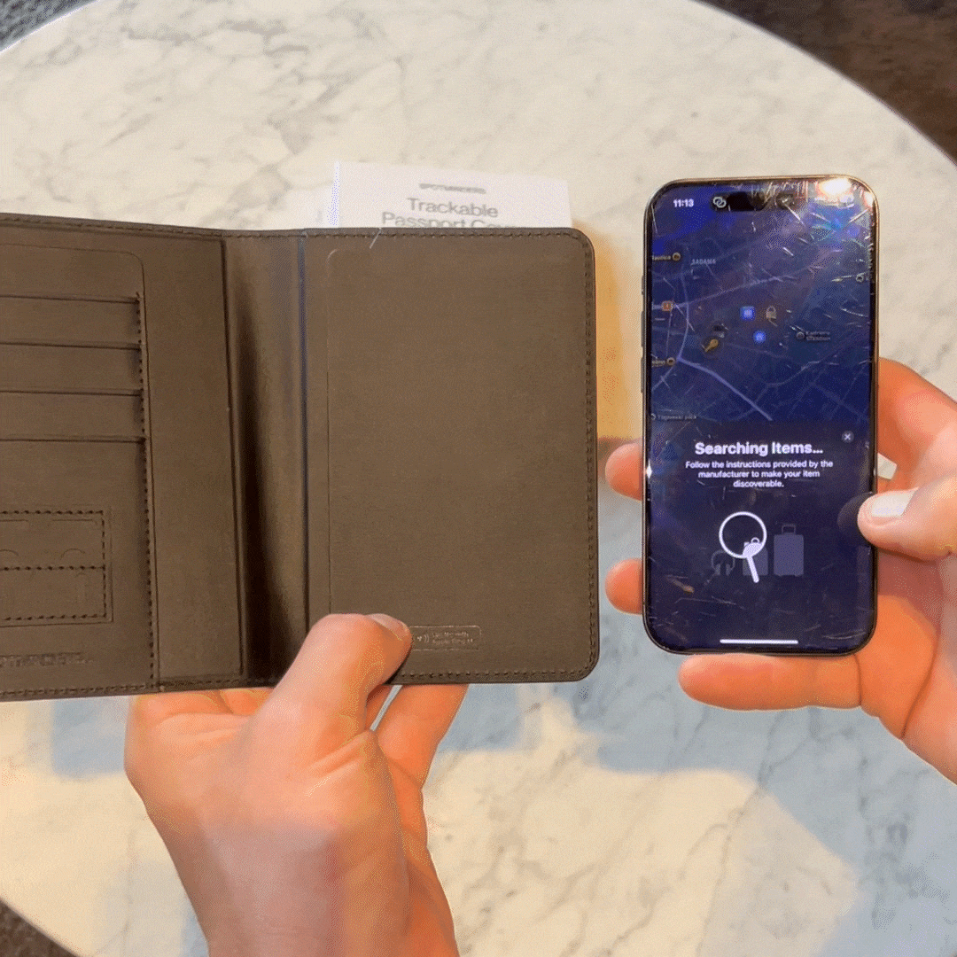Verfolgen Sie Ihren Reisepass in Echtzeit mit dem Apple Find My®-kompatiblen Passport Tracker von Spotminders