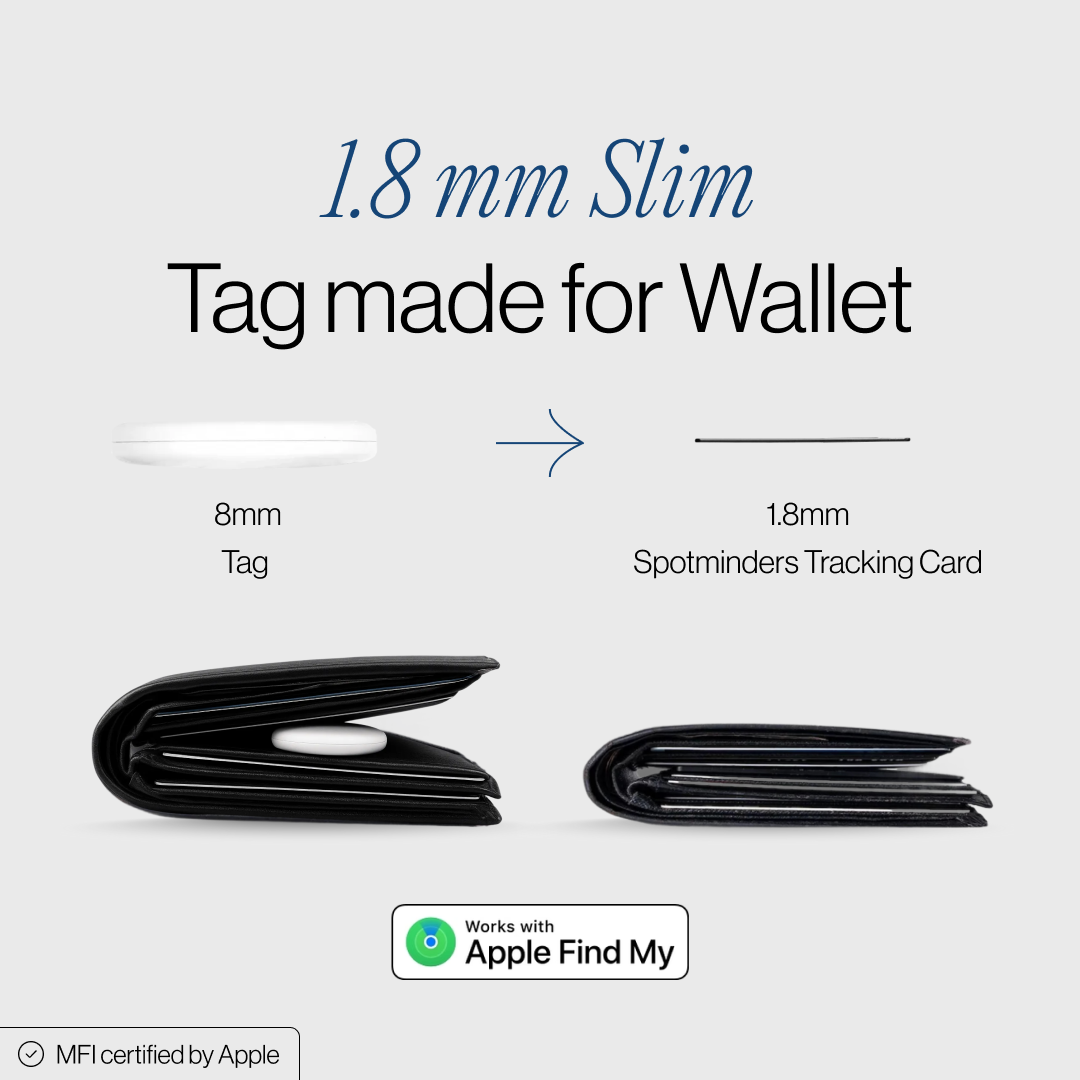 The Spotminders Tracking Card seamlessly integrates with Apple Find My.