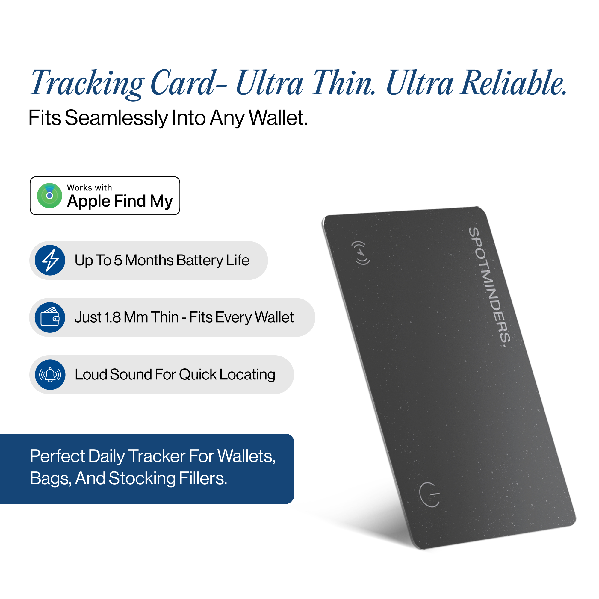 The Spotminders Tracking Card features an ultra-slim design, measuring just 1.8mm thin. It seamlessly fits into your wallet without adding bulk or discomfort.