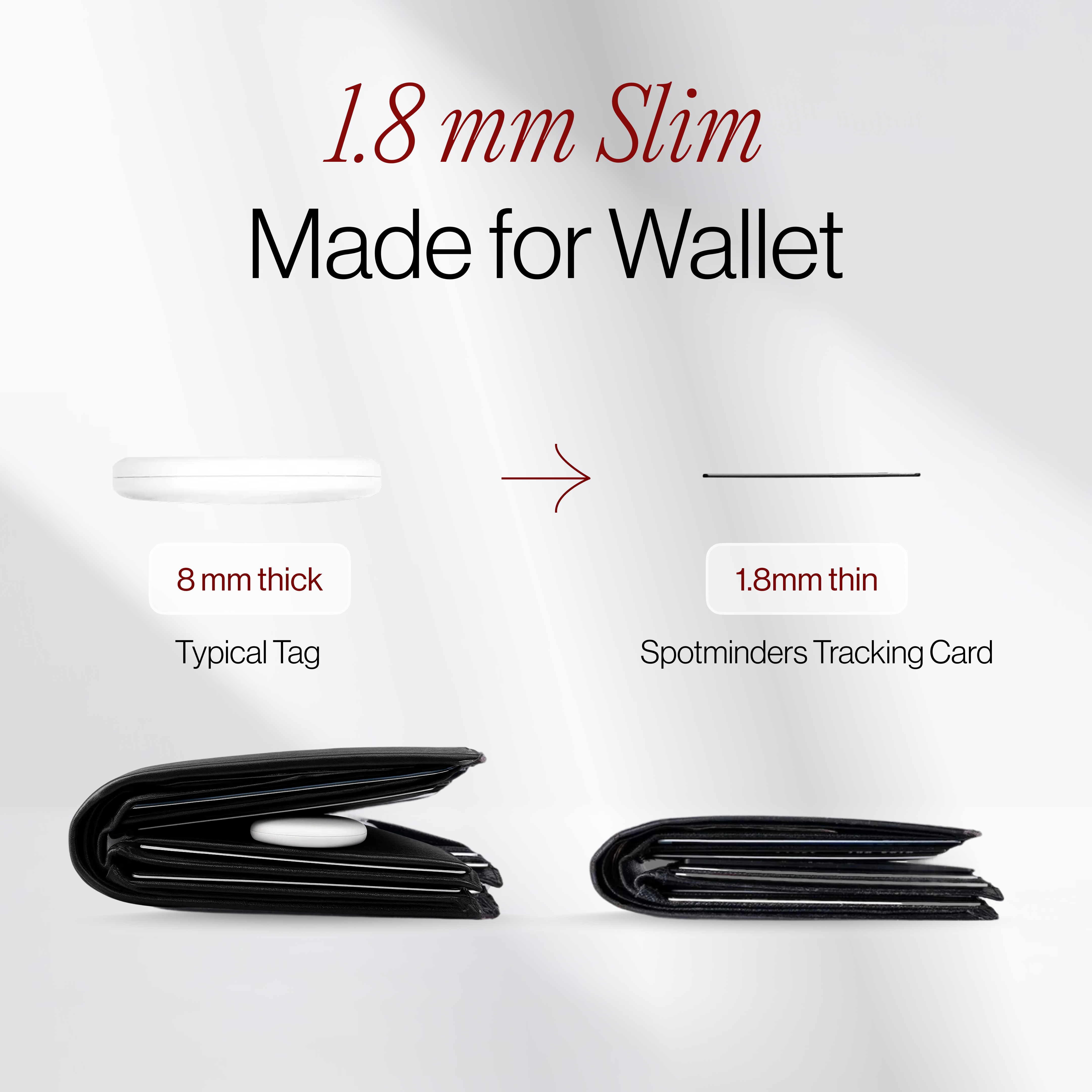 The Spotminders Tracking Card features an ultra-slim design, measuring just 1.8mm thin. It seamlessly fits into your wallet without adding bulk or discomfort.