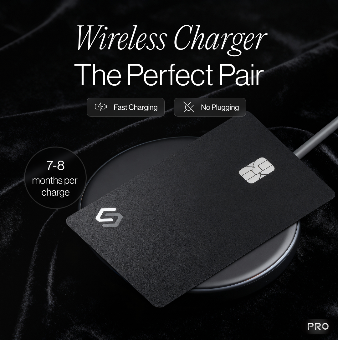 Qi and MagSafe compatible, simple wireless charging. A quick 2-hour top-up powers the card for up to 8 months. Double the power as our regular card.