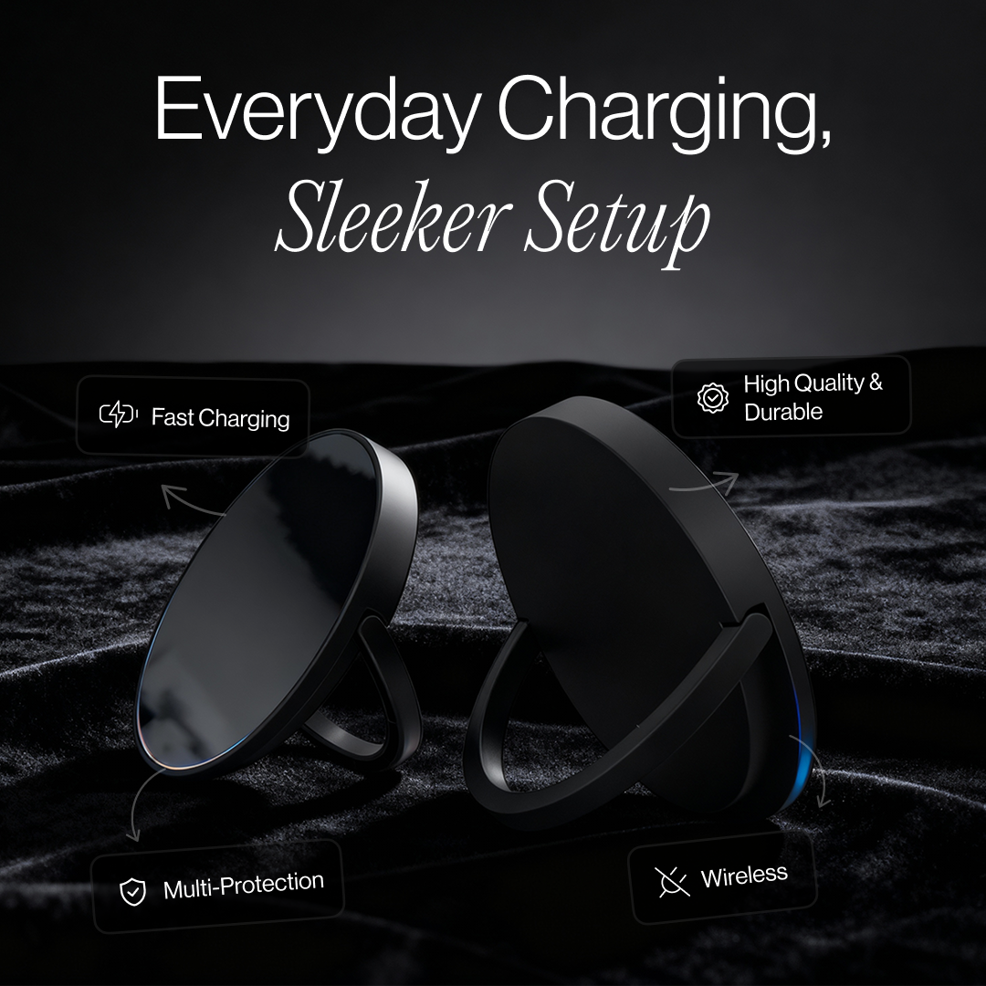 Crafted with a zinc alloy body and anti-scratch tempered glass, this charger is built to last with a premium finish and long-lasting durability.